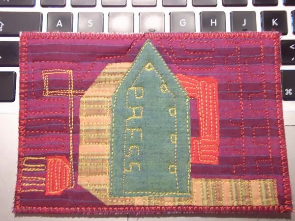 And I belong to a group called Fast Friday Fabric Challenge which proposes a theme each month and allows a week to make a quilt on that theme.. This (above) took 20 minutes. I then spent an hour trying to access the blog to upload it.. Bloody Google insists that I must get a code from my mobile phone to allow access, and I can't give a number.. I'm not thirteen, don't live to text, just want to show my work on a forum I belong too.. I don't know why I bother.. Actually, I think I won't any more.. Not amusing enough..